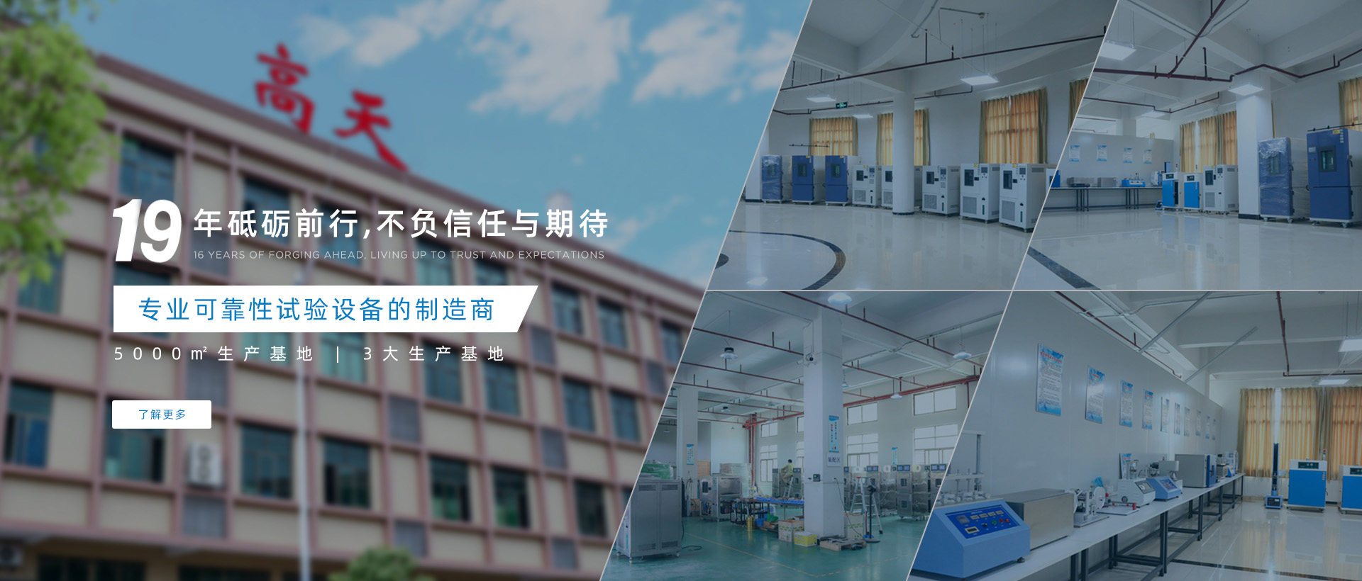 東莞市高天試驗設備有限公司是一家可靠性試驗設備的制造商,我們專注于可靠性試驗已有19余年,在此期間,我們竭盡所能,努力為客戶提供完善的實驗室規(guī)劃方案,匹配質(zhì)優(yōu)價廉的試驗設備。高天擁有完整的研發(fā)團隊,其中有很多人都躋身試驗設備行業(yè)多年,能為顧客提供完善的技術方案,以幫助廣大客戶在確保其產(chǎn)品品質(zhì)的前提下,有效降低經(jīng)營成本,提升經(jīng)營競爭優(yōu)勢。高天生產(chǎn)的設備種類眾多,同時擁有實用新型專利證書,銷售范圍覆蓋全國。公司自成立以來堅決以精美的外觀設計,認真務實的工作精神,良好周到的后續(xù)服務,贏得了客戶良好的口碑。我們將一如既往,堅持以“誠信經(jīng)營”為...